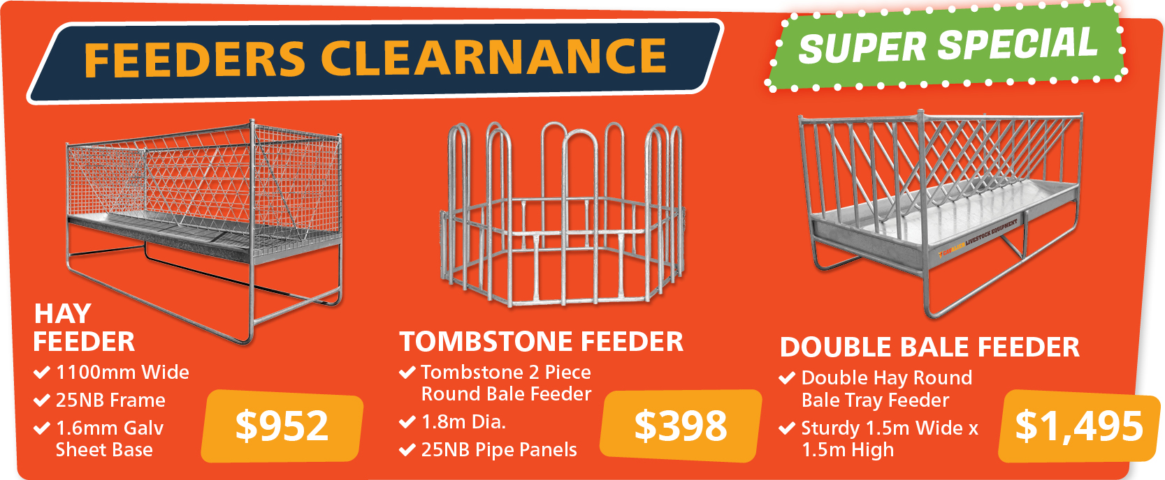 Don’t want to miss out on our Livestock Equipment Specials? Make sure you sign up to our mailing list so you don’t miss any of our limited stock offers.